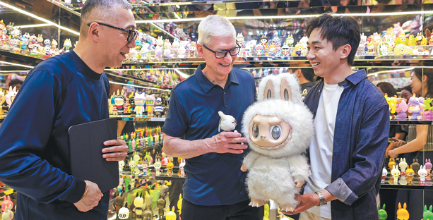 During his visit on Monday, Cook toured the "The Monsters" exhibition in Shanghai, met Pop Mart founder Wang Ning and artist Kasing Lung, and was gifted a custom Labubu figurine — a version of the brand's best-known character — clutching an iPhone. Videos and photos of Cook's meeting quickly went viral on social media, sending Pop Mart intraday shares up as much as 6 percent to HK$276.8 ($35.6) before paring gains to close at HK$263, with trading volume exceeding HK$4.4 billion.