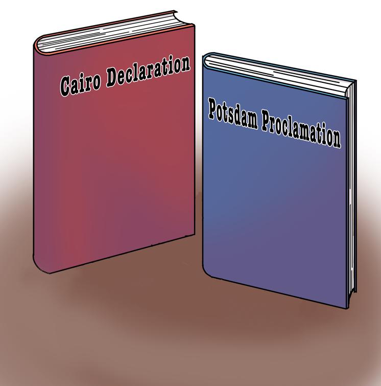 On July 26, 1945, the same three countries issued the Potsdam Proclamation, stipulating the terms of Japan's surrender. Article 8 of the proclamation says "the terms of the Cairo Declaration shall be carried out and Japanese sovereignty shall be limited to the islands of Honshu, Hokkaido, Kyushu, Shikoku and such minor islands as we determine".