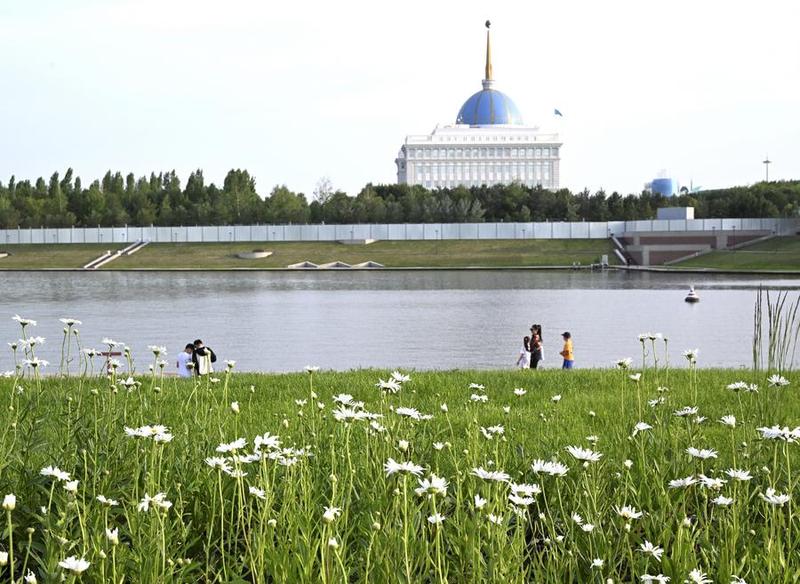 People enjoy leisure time by the Ishim River in Astana, Kazakhstan, June 11, 2025. [Photo/Xinhua]