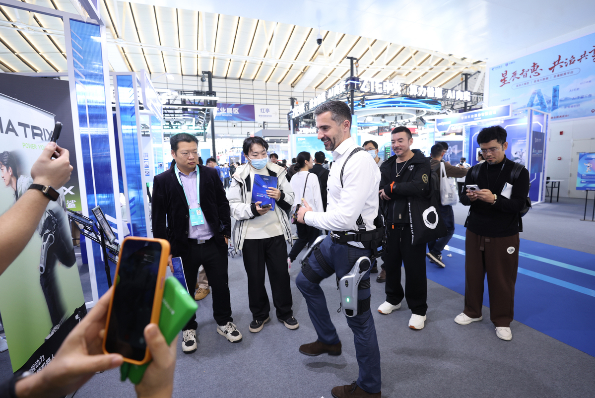 A participant tries out an exoskeleton robot at the 2025 World Internet Conference (2025 WIC) Light of Internet Expo in Wuzhen, East China's Zhejiang province, on Thursday. [Photo by Zou Hong/chinadaily.com.cn]