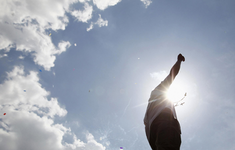 A model adjusts her hair as she sits on a BMW 530i AC Schnitzer car at Auto China 2012 in Beijing April 24, 2012. [Photo/Agencies] |