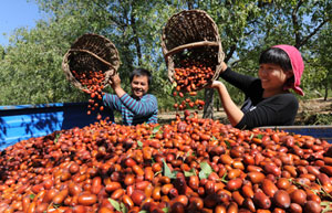 A bumper harvest of over 13, 330 hectares of jujubes from Zaozhuang city, Shandong province, will begin in the coming autumn.