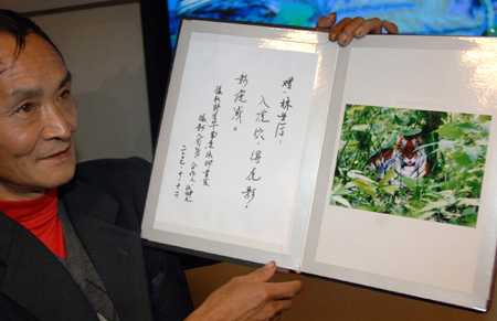 Zhou Zhenglong shows the photograph he took. [File photo]