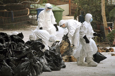 Although H5N1 is mainly a disease among birds, health officials fear it may mutate into a form that spreads easily among people. If that happens, it could trigger a pandemic and kill millions. Even in its current hard-to-catch form, H5N1 has infected 389 people since 2003, killing 246. Hong Kong Health Secretary York Chow said the affected farm was in the city's northern Yuen Long District, which reported the unusual deaths of 60 chickens on Monday. "After a series of tests, we have confirmed this morning that the chickens died from the H5 virus," Chow told reporters Monday. Workers clad in masks, white medical suits and black rubber gloves began the mass slaughter of some 80,000 birds at the farm Monday afternoon. All chickens within a 3-kilometer radius of the farm are scheduled to be destroyed, along with birds at a wholesale market, Chow said. |