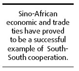 Updated: 2009-02-11 07:45 Although far apart geographically, China and Africa have enjoyed a long tradition of friendship and economic exchanges. On the basis of equality and mutual benefit, China has long pushed for expanded economic and trade cooperation with the African countries, especially since the founding of New China and the African countries' success in gaining national independence. A new-type strategic partnership, based on mutual political trust, economic reciprocity and mutual cooperation, has been established between the two under their common efforts, Over the past half century, China has had active economic cooperation with African countries and offered economic assistance to them within its capacity. In return, African countries have also extended unreserved support to China on numerous international issues. Since the beginning of the 21st century, especially since the convening of the China-Africa Cooperation Forum in late 2006, economic and trade relations between the two have entered a stage of accelerated all-round development. In 2000, Sino-African trade volume was $10 billion, but the figure increased to a record $106.8 billion last year, with an annual average growth rate of 30 percent in eight straight years. The Africa trade has become a new flashpoint in China's foreign trade in the context of the ongoing economic crisis. Concurring with its widening trade with Africa, the country's investment in the underdeveloped continent has also been on a steady increase in the past years. By the end of last year, the country's direct investment in Africa had transcended $5 billion. The holding of the 2006 Beijing summit of the China-Africa Cooperation Forum laid a new milestone in the history of bilateral relations. At the summit, President Hu Jintao announced eight measures to be adopted to consolidate cooperation with Africa in the new period and they have been effectively implemented over the past two years. In the spirit of the forum, China has continuously increased its aids to African countries through signing bilateral aid accords or signing preferential trade agreements. The country has also exempted a number of African nations from repaying debts and set up a special Sino-African development fund to encourage domestic enterprises to invest in the undeveloped but resources-rich continent. It has also dispatched batches of technical experts to Africa to help with their personnel training and technological development. Also, a zero-tariff policy has been adopted on China's import of a wide range of African products, from agricultural products to mineral ores, leather, clothing and wooden furniture. Some economic cooperative zones have been established in the continent, creating many employment opportunities for local people.