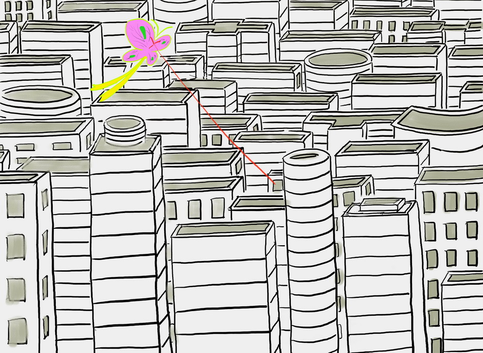 This cartoon by Wang Guichao raises concerns over the lack of space for children’s playgrounds as skyscrapers increasingly dominate cityscapes.
