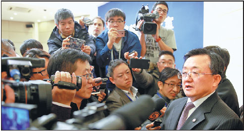 Vice-Foreign Minister Liu Zhenmin answers reporters' questions in Beijing on Wednesday at a news conference on the State Council Information Office's publication of a white paper on China's Asia-Pacific security cooperation.Zou Hong / China Daily |