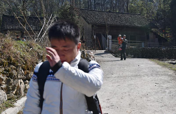 Teary farewell as migrant worker leaves son