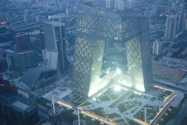 The CCTV Headquarters, dubbed "the big pants" because of its shape, is a landmark in the central business district area in Beijing. China Photo Press |