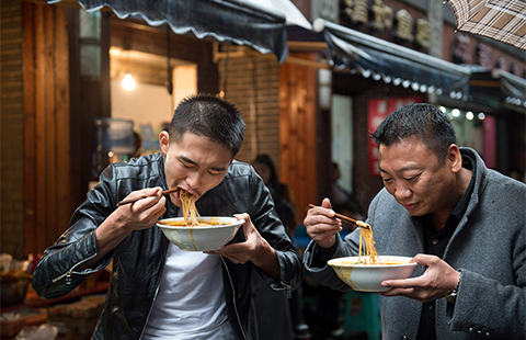 Hong Kong at dusk when the sky takes on a blue tint. Boats are visible between the buildings. [Photo/Sipa]