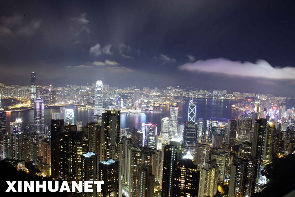 這是鳥(niǎo)瞰維港夜景。維港夜景被譽(yù)為“世界三大夜景”之一,2004年開(kāi)始,“幻彩詠香江”為這一動(dòng)人的景色再添重彩——超過(guò)40座建筑物充當(dāng)演員,每晚聯(lián)袂獻(xiàn)上一臺(tái)美妙無(wú)比的13分鐘40秒激光音樂(lè)會(huì)演。新華社張燕輝攝