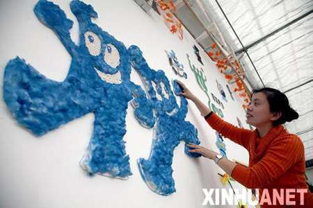 3月31日,接待人員在擺放用棉花和米制作的特色“海寶”工藝品。 在上海世博會倒計時30天來臨之際,一批農(nóng)家特色“海寶”工藝品陸續(xù)亮相上海金山區(qū)廊下鎮(zhèn)中華村的“世博農(nóng)家”示范戶。這些工藝品用五谷雜糧、農(nóng)家土布等材料制作而成,主要作為裝飾和贈送給游客的小禮物。世博會期間,到這里觀光的中外賓客也可親手參與制作,體驗農(nóng)家風情。
