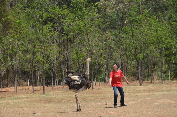 野生動物園將羊駝、鴕鳥、駱駝全天散放,游客有機會喂它們食物,合影留念。