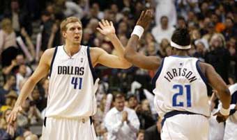 Nowitzki scored 15 by halftime, then played the second half with a sprained left thumb following a hard foul by Kenyon Martin. Michael Finley, just named the Western Conference player of the week, scored 18 and Steve Nash had 18, too.