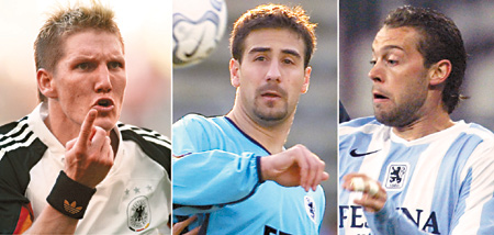 A combination file photo shows German soccer players (Left to right) Bayern Munich's midfielder Bastian Schweinsteiger, Paul Agostino of TSV 1860 Munich, and TSV 1860 Munich's Quido Lanzaat. Bayern Munich and Germany midfielder Bastian Schweinsteiger has been questioned by police investigating alleged match fixing in German soccer, Munich daily tz reported on Thursday. Schweinsteiger and two players from second division club TSV 1860 Munich, Quido Lanzaat and Paul Agostino, had been questioned, the newspaper said in an article released ahead of publication on Friday. (REUTERS)