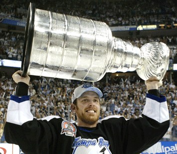 The Flames, threatening to become one of the most unlikely champions in NHL history, were held to only seven shots in a dismal first two periods before making a frantic late surge started by Craig Conroy's power-play goal midway through the third. Lightning coach John Tortorella insisted throughout the finals that his team would win only if his best players outplayed Calgary's and they did exactly that. Fedotenko scored on goals created by Conn Smythe winner Brad Richards and Vincent Lecavalier and goalie Nikolai Khabibulin held off Calgary's late flurry while Flames star Jarome Iginla was again held scoreless. Tampa Bay joined the 2001 Avalanche as the only teams to overcome a 3-2 deficit in the finals in 30 years, with the Lightning finally ending their record 13-game streak of alternating winning and losing by winning Game 6 on the road in overtime and Game 7 at home. Maybe it's only coincidence, but in each series a 22-season veteran who had never won the Cup finally did so. Colorado's Ray Bourque did it in 2001, and 40-year-old Dave Andreychuk finally lifting the Cup after playing a record 1,758 games without winning it. Bourque called the Lightning's Tim Taylor on Saturday to offer advice on how to deal with coming back from the deficit, and to wish Andreychuk good luck. Now the question is how long the Lightning will rule. The NHL's labor agreement runs out September 15, and all signs point to a lengthy lockout that will significantly delay or shut down the 2004-05 season.