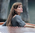 Angelina Jolie films a scene where she drives a boat down the canal.