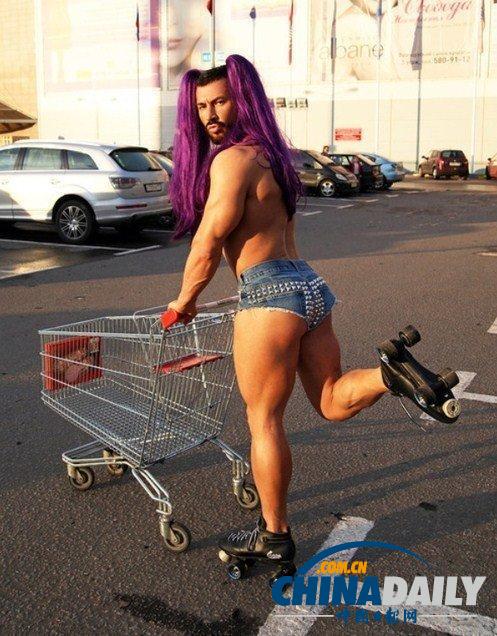 俄羅斯猛男雷人裝現(xiàn)身街頭