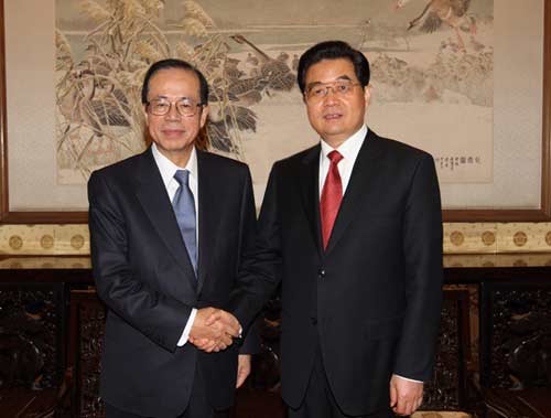 資料圖片:2007年12月28日,國家主席胡錦濤在北京釣魚臺養(yǎng)源齋會見日本首相福田康夫。新華社發(fā)(吳華 攝)