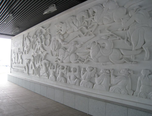 栩栩如生的漢白玉浮雕將國(guó)家體育館西廣場(chǎng)和奧林匹克大家庭裝飾的別有風(fēng)情。新華網(wǎng) 俞瑋攝
