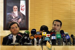 伊朗外交部副部長(zhǎng)哈桑?卡什卡維(左)與沙赫拉姆·阿米里召開新聞發(fā)布會(huì)