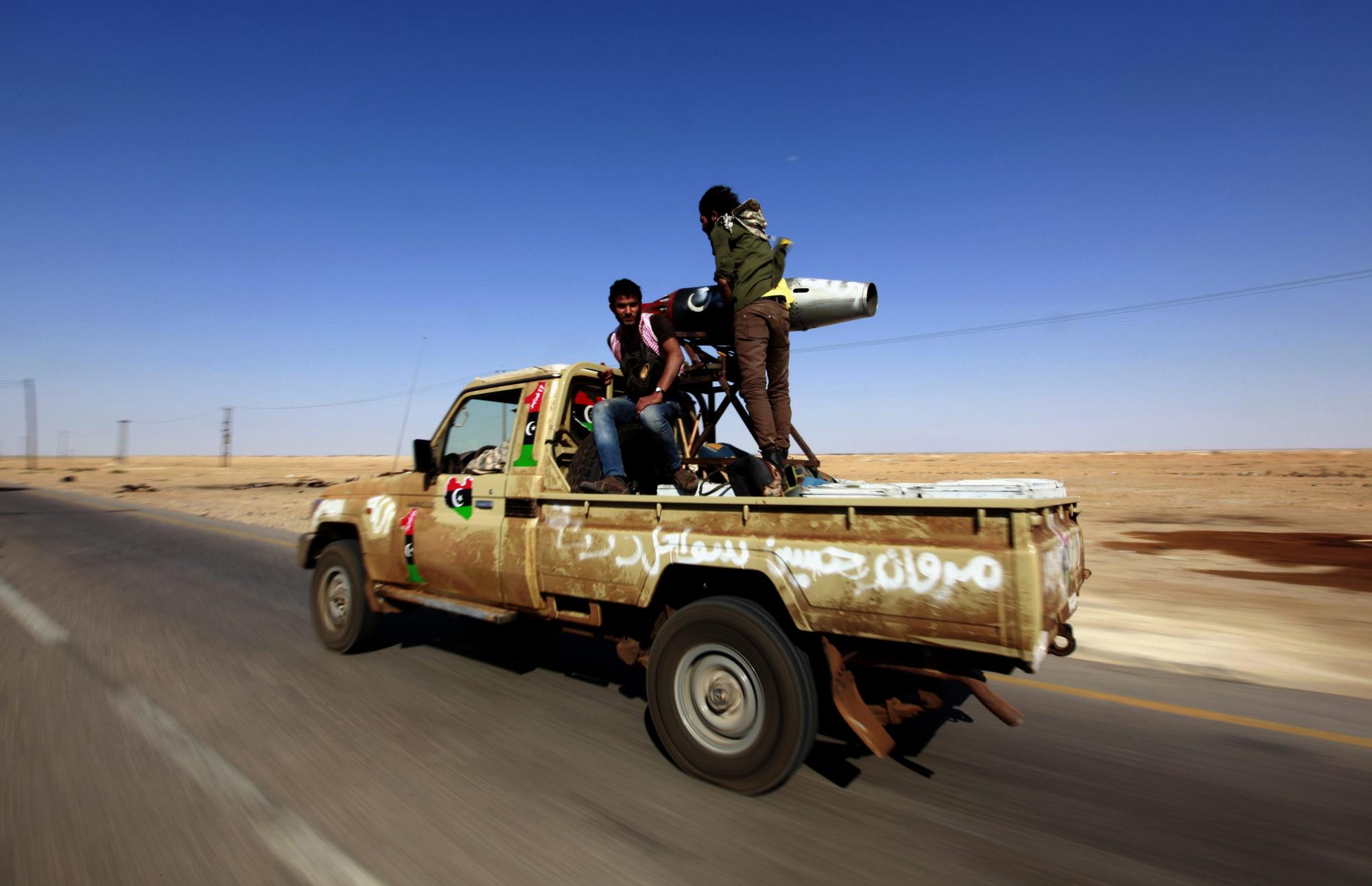 反對(duì)派士兵駕車穿過(guò)艾季達(dá)比耶。