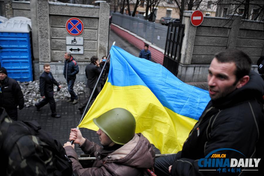 2月22日,在烏克蘭首都基輔,抗議者驅(qū)車游行慶祝。 烏克蘭議會22日經(jīng)投票決定,宣布總統(tǒng)亞努科維奇“自動喪失職權(quán)”,并將于5月25日提前舉行總統(tǒng)選舉。 (新華社記者 戴天放 攝 )