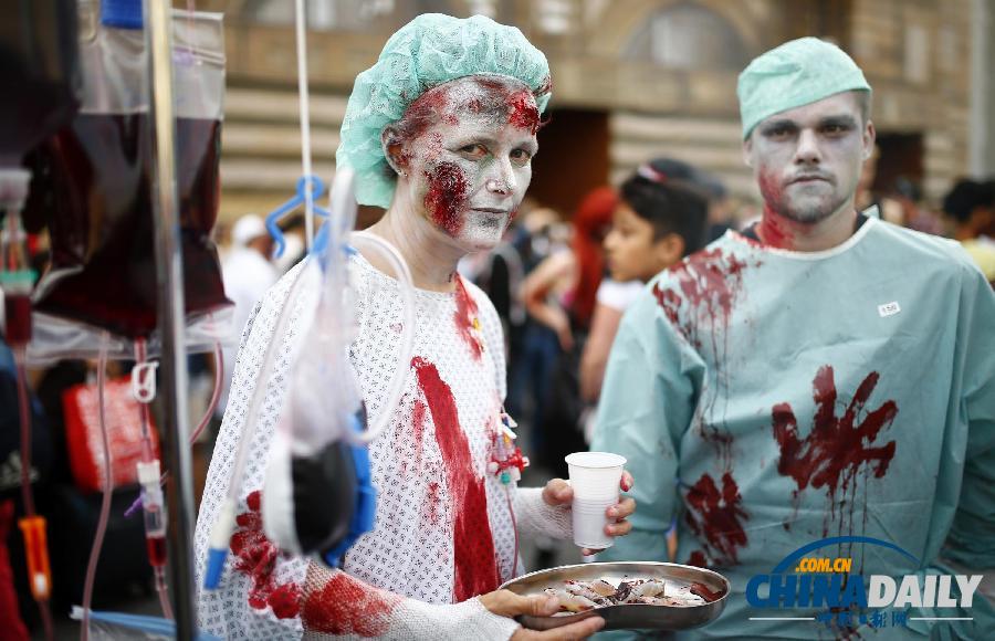 德國“僵尸”大游行 看誰的造型更恐怖?