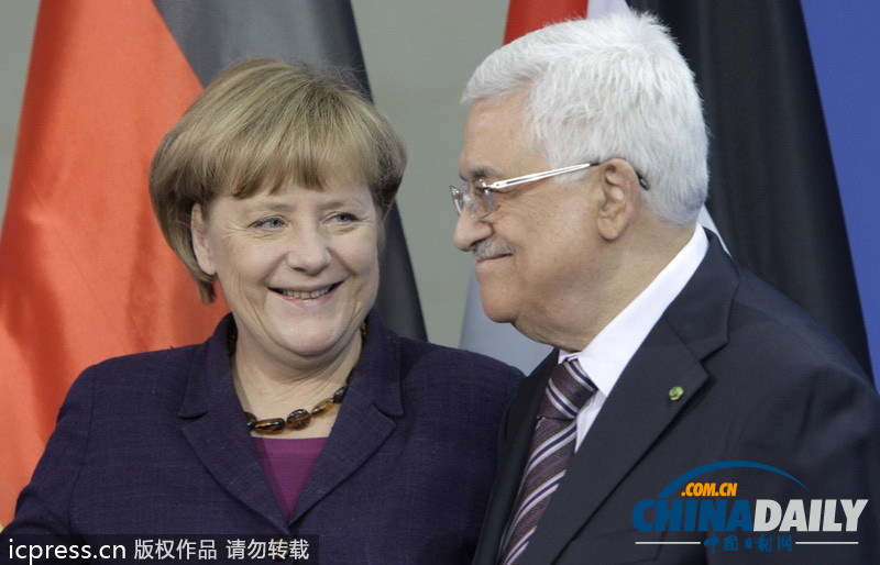 默克爾與阿巴斯會晤 表情多變做“槍擊”手勢