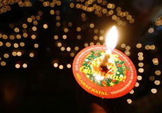 An Indonesian Christian poses with a candle during Christmas mass at the Immanuel Church in Jakarta December 24, 2009.