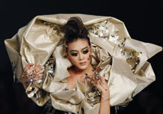 A model presents a creation by Chinese designer Guo Pei at the Hong Kong Fashion Week for Fall/Winter 2010 January 18, 2010.