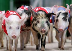 Piglets compete in a running event during a training session for the Pig Olympics in Moscow April 12, 2006.