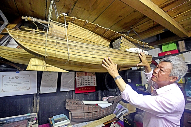 Shang Jinji, a cultural relic restoration craftsman, is planning to make miniature models of ancient wooden ships to commemorate the reopening of the Xiaoqing River in Jinan, Shandong province as a shipping route.