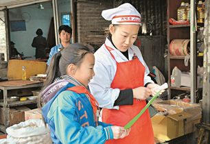 Students of Shuangta Beilu Primary School delivered leaflets containing safety tips at shops and communities near their school in Taiyuan, Shanxi province, Nov 8.