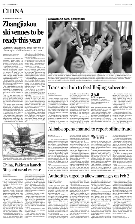 Venues for the 2022 Olympic and Paralympic Winter Games in Zhangjiakou, Hebei province, will be completed and put into use for ski competitions this year, a Hebei top official said on Tuesday.