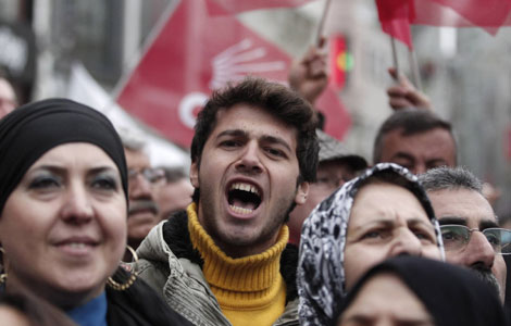 A Hindu holy man, or sadhu, rubs ashes on his hand at the premises of Pashupatinath Temple in Kathmandu February 26, 2014. [Photo/Agencies] |