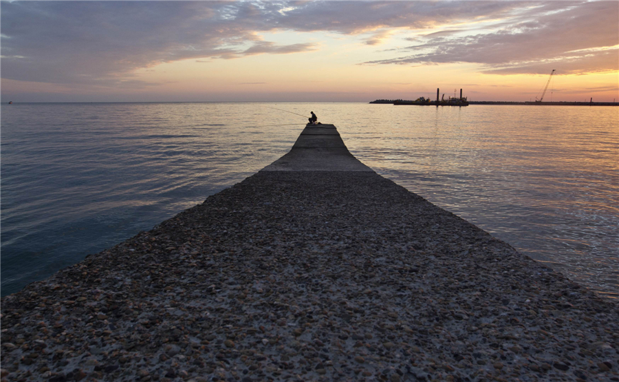 A man fishes on a pier at the beach in central Sochi September 19, 2013. With just months to go before Russia is due to host the 2014 Winter Olympics in the Black Sea resort of Sochi, cranes still tower over muddy construction sites in the palm tree-lined city, as it tries to complete its multi-billion dollar transformation into a winter sports hub. [Photo/Agencies]