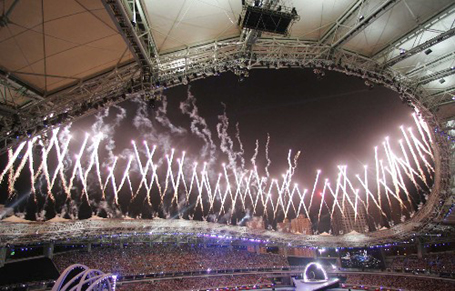 Fireworks light up the sky during the opening ceremony for the 2007 Special Olympics World Summer Games at Shanghai Stadium in Shanghai October 2, 2007. [Xinhua]
