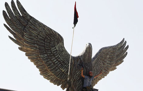 Oscar Pistorius of South Africa (L) runs past Femi Ogunode of Qatar during the men's 400 metres heats at the IAAF World Championships in Daegu, Aug 28, 2011. [Photo/Agencies]