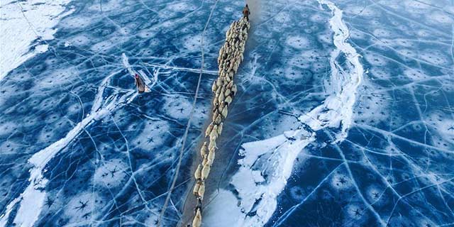 Annual sheep migration crosses world's highest lake
