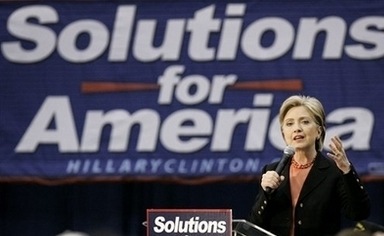 Democratic presidential hopeful Sen. Hillary Rodham Clinton, D-N.Y., campaigns at a rally in Waco, Texas, in this Feb. 29, 2008 photo. [Agencies]
