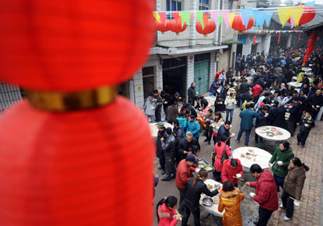 重慶:五寶年豬鬧新春 兩千人吃百家宴