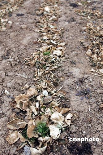 2月5日,河南鄭州西郊一處菜地里大面積枯黃的青菜令人惋惜。自去年十一月下旬以來,河南全省平均降水量僅為二點(diǎn)二毫米,較常年同期減少九成多,為一九六一年以來同期最小值。中新社發(fā) 李志全 攝