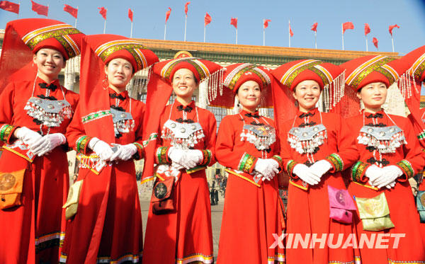 3月5日,為兩會(huì)服務(wù)的工作人員在北京人民大會(huì)堂前拍照留念。當(dāng)日,第十一屆全國(guó)人民代表大會(huì)第二次會(huì)議在北京人民大會(huì)堂開(kāi)幕。新華社記者謝環(huán)馳攝