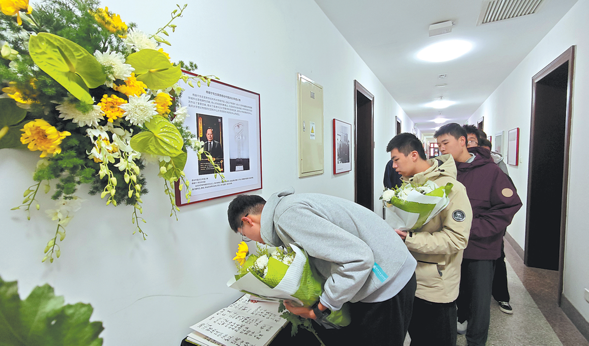 Students of Tsinghua University pay tribute to Yang Chen-Ning in Beijing on Sunday, mourning the passing of the renowned physicist and Nobel laureate, who died on Saturday at the age of 103. Yang, seen as one of the greatest physicists of the 20th century, achieved many breakthroughs in particle physics, quantum field theory, statistical physics and condensed matter physics.  LI MUYI/FOR CHINA DAILY