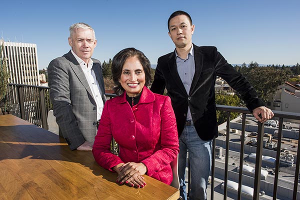 Martin Leach, president of NextEV Inc, Padmasree Warrior, chief executive officer of US operations for NextEV, and William Li, executive chairman of NextEV, stand for a photograph.[Photo/Agencies]