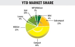 Sales of light vehicles - including passenger and light commercial vehicles - in June continued May's trends, rising 8.5 percent year-on-year to 1.72 million units.