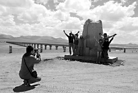 railway bridge in the background is part of the Qinghai-Tibet railway