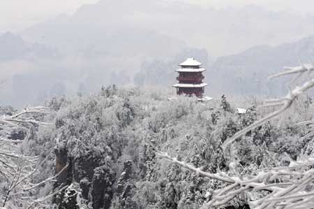 Picture taken on March 4, 2009 shows a view of the Tianzi Mountain in Zhangjiajie, a UNESCO heritage site in central China's Hunan Province. [Xinhua]