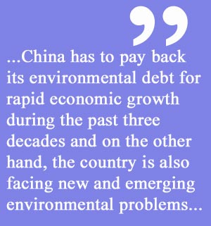 ZHOU SHENGXIAN Safeguarding environment a priority Although the country has already beaten its five-year target to slash emissions, especially of sulfur dioxide - a major air pollutant - the quality of the environment has not improved accordingly. China's double-digit economic expansion has been largely achieved at the cost of the environment and a depletion of natural resources. And with an improved standard of living, the public is leaving a larger ecological footprint. |